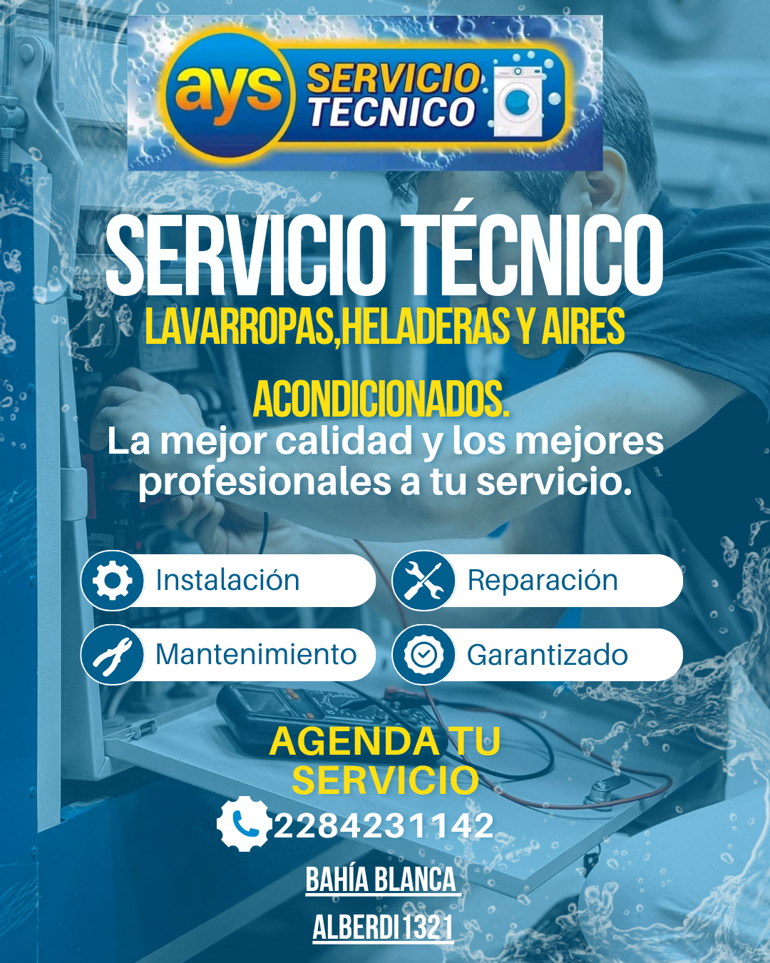 Servicio Técnico de lavarropas automáticos, secarropas, microondas, heladeras y reparación e instalación de aires acondicionados.