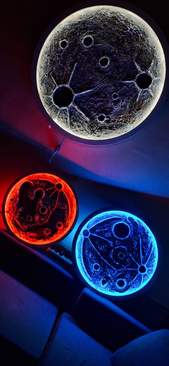 Somos Auraluna. Creamos obras lumínicas lunares artesanales, hechas completamente a mano desde cero, cuidando cada relieve y textura para lograr un efecto 3D casi realista. Te acompañamos a elegir tu luna ideal y respondemos todas tus dudas: medidas, opciones, tiempos de entrega e instalación. Cada luna es única, creada con dedicación para transformar la energía de cualquier espacio!