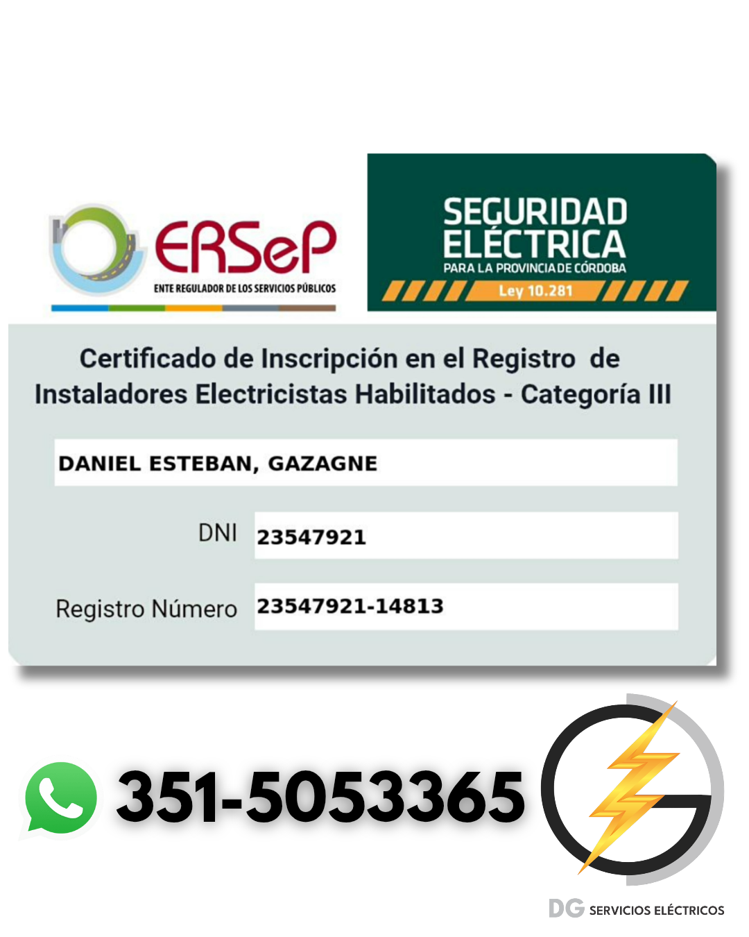 Instalador electricista habilitado por ERSEP