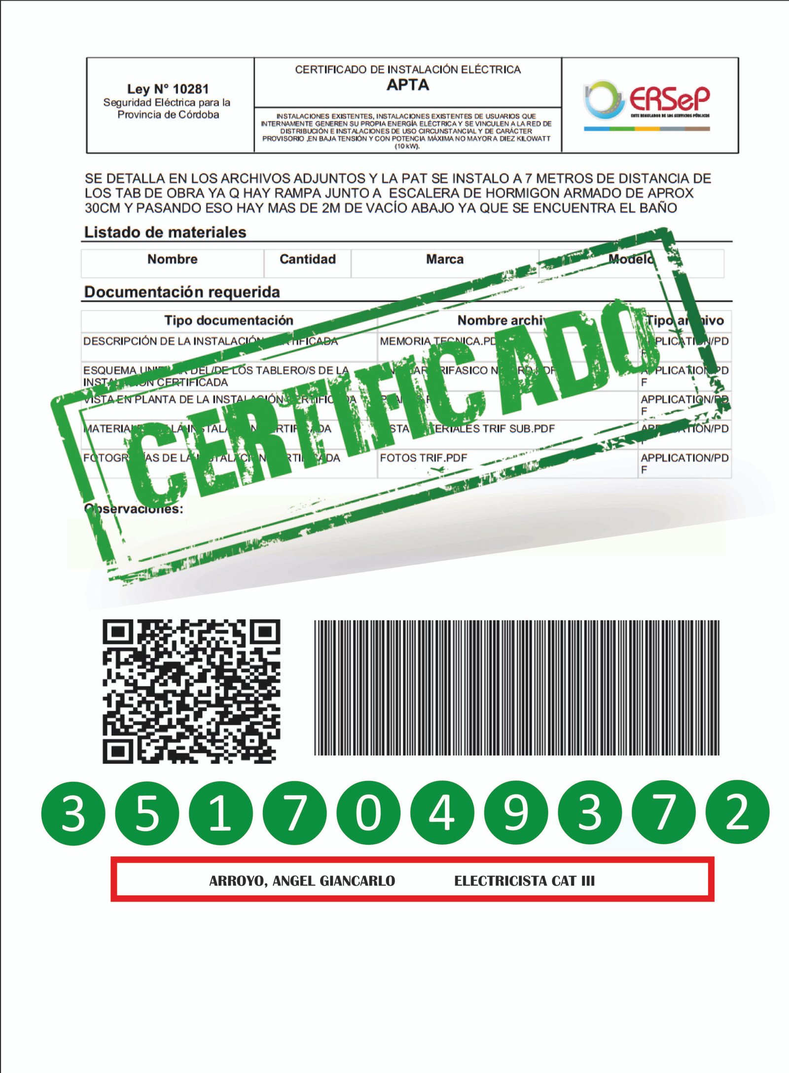 ELECTRICISTA MATRICULADO