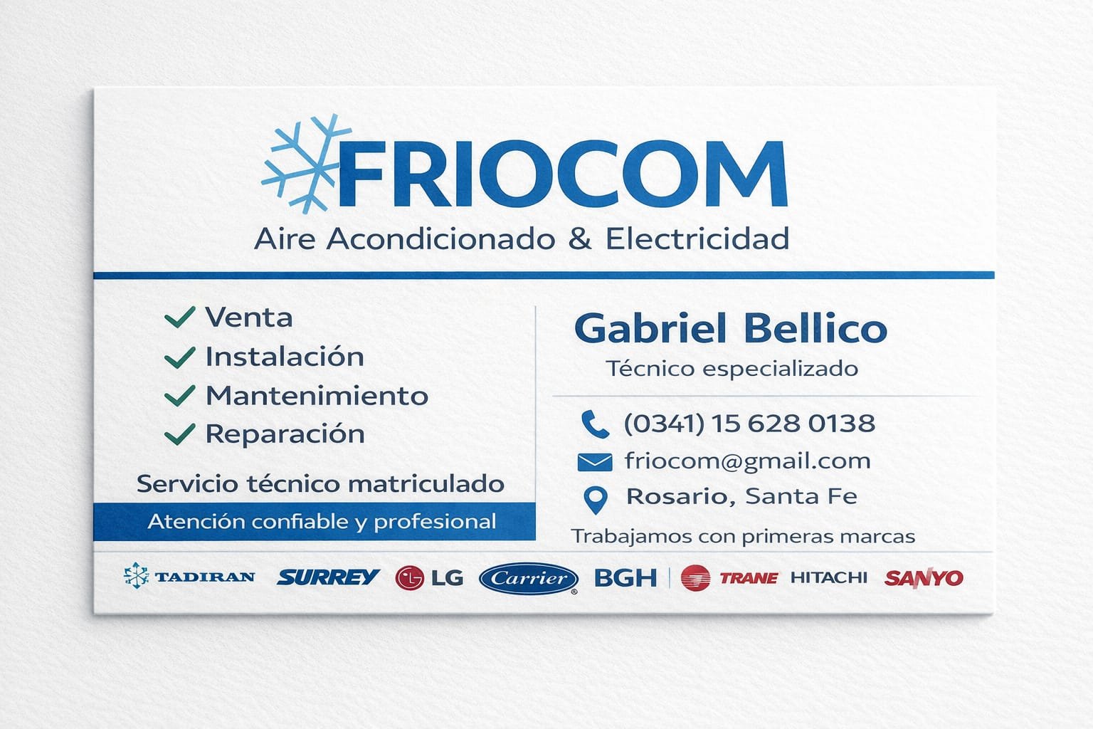 Fricom ,Es una empresa dedicada a reparar e instalar Aire acondicionado ,en la ciudad de Rosario ,con personal idóneo y calificado matriculado
