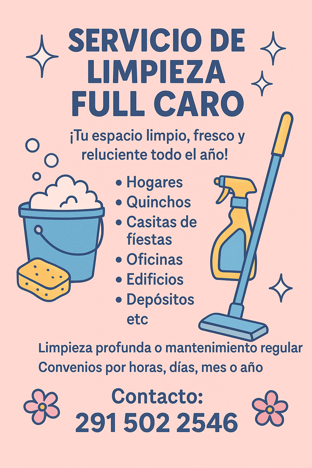 Mi nombre es Carolina y me presento para ofrecer mis servicios de limpieza profesional. Cuento con experiencia en la limpieza y mantenimiento de oficinas,concesionarios,hogares,finales de obra,depósitos y espacios comunes.