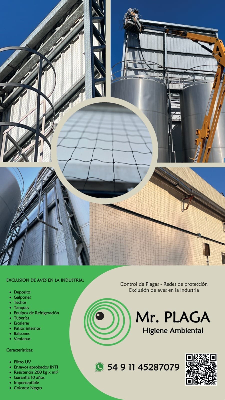 Control de plagas/ Fumigación/Desrratización/Desinfección/Redes de rotección para balcones y ventanas/exclusión de aves en la industria