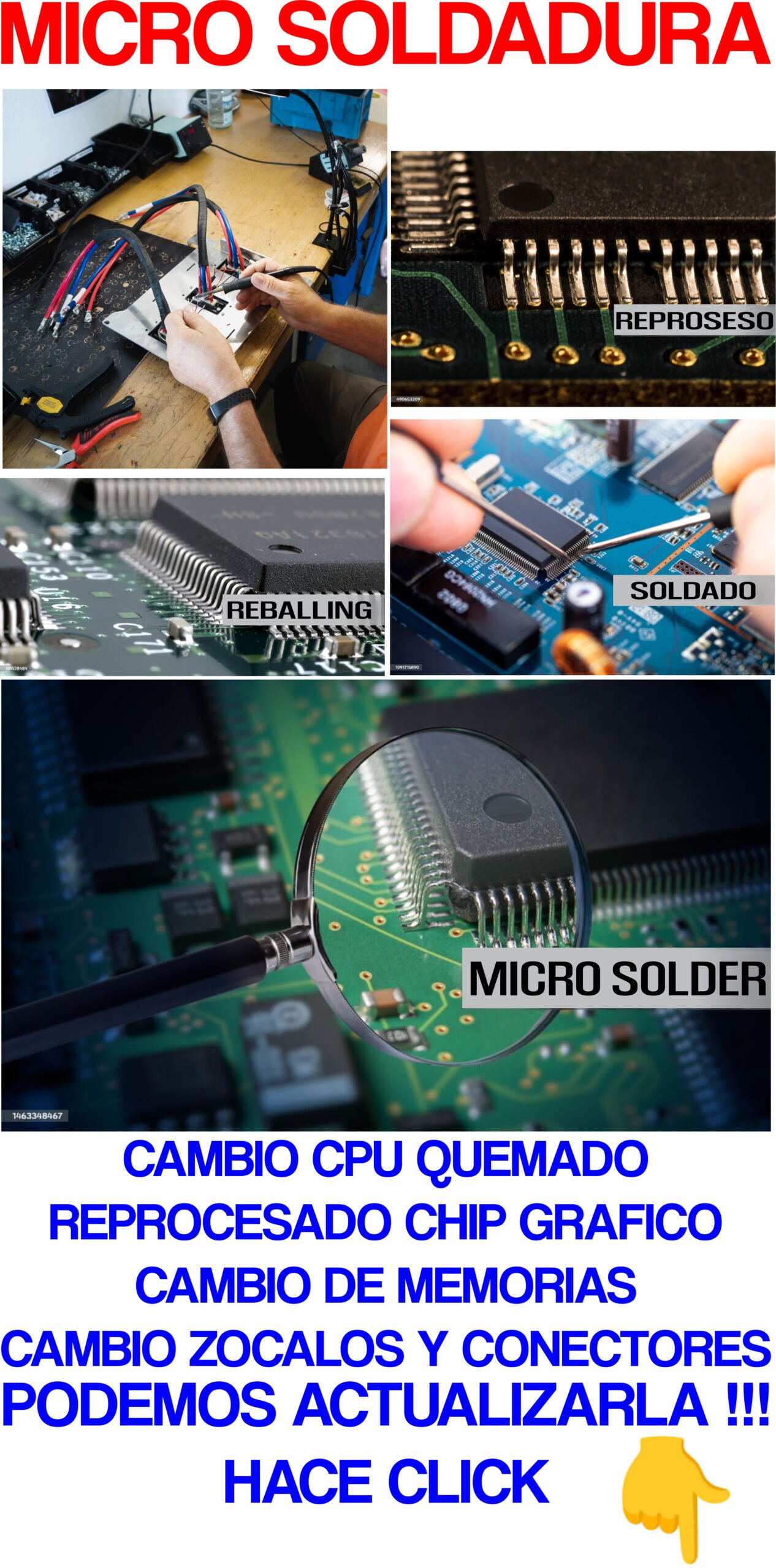 Reparación de puertos USB, conectores, chips BGA y reballing. Tecnología de punta.