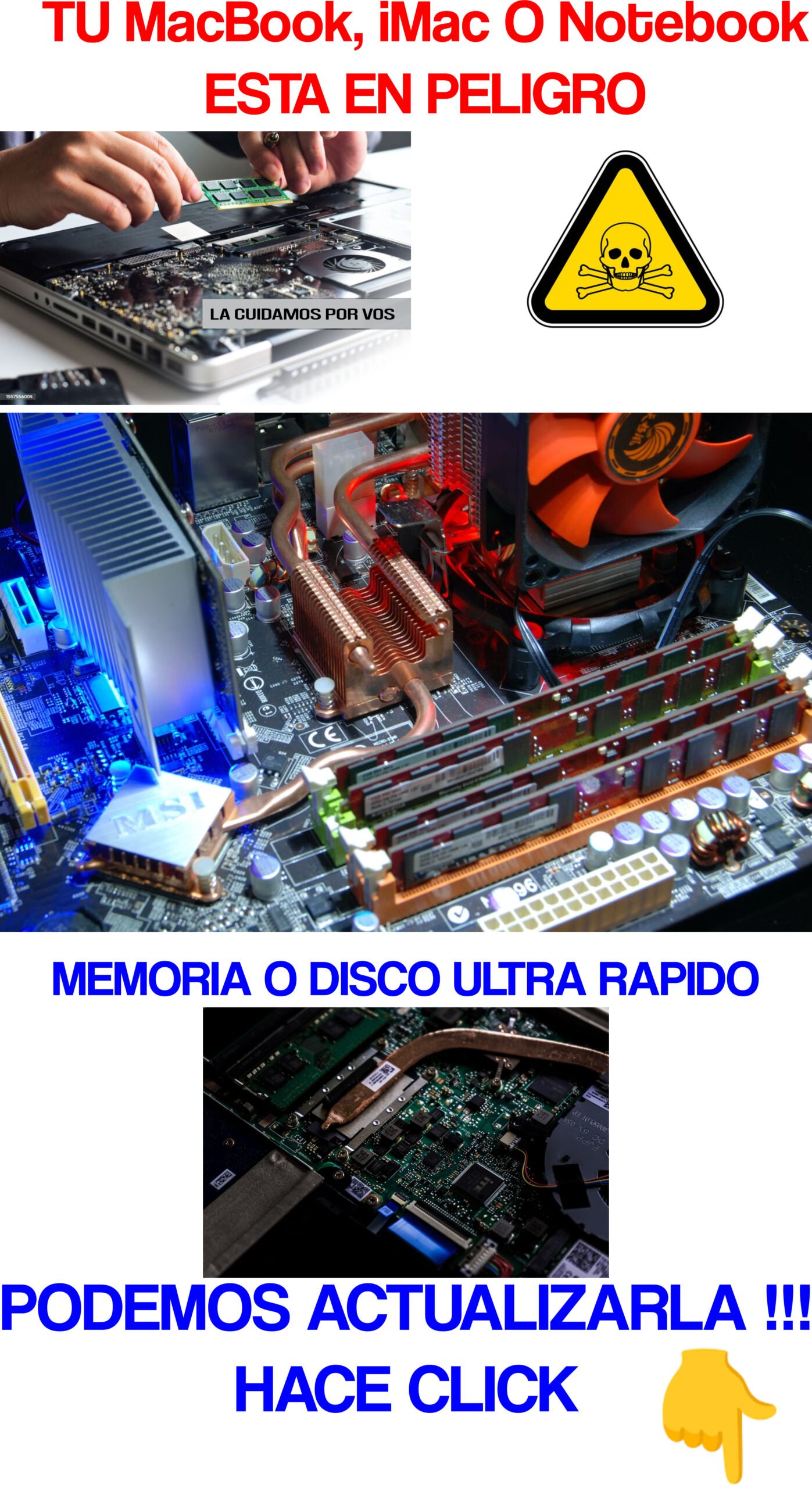 Limpieza, SSD/RAM y reparación de logic boards. Solución a sobrecalentamientos y fallas.
