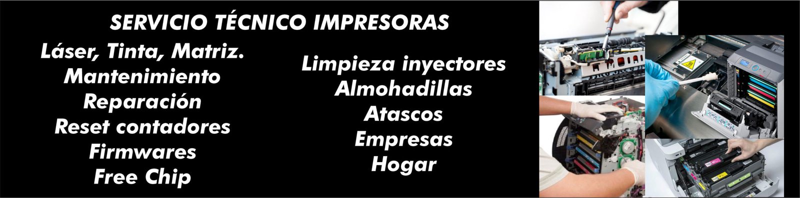 Tinta/tóner, atascos de papel y mantenimiento. HP, Epson, Canon y más.