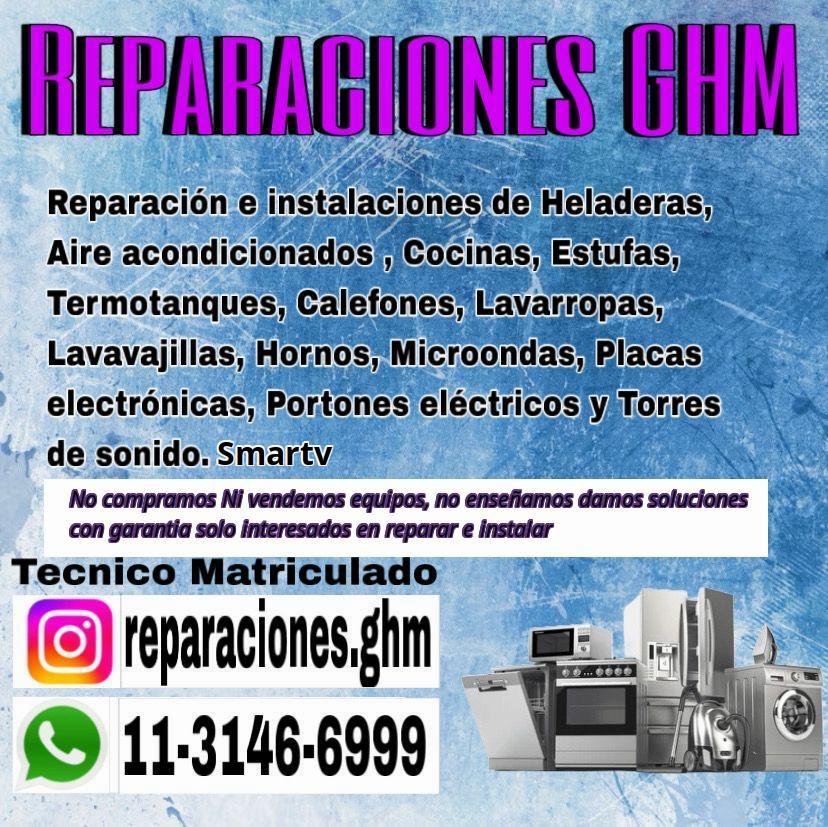 Reparaciones de lavarropas, heladeras, aires acondicionados, estufas, termotanques, calefones, portones eléctricos.