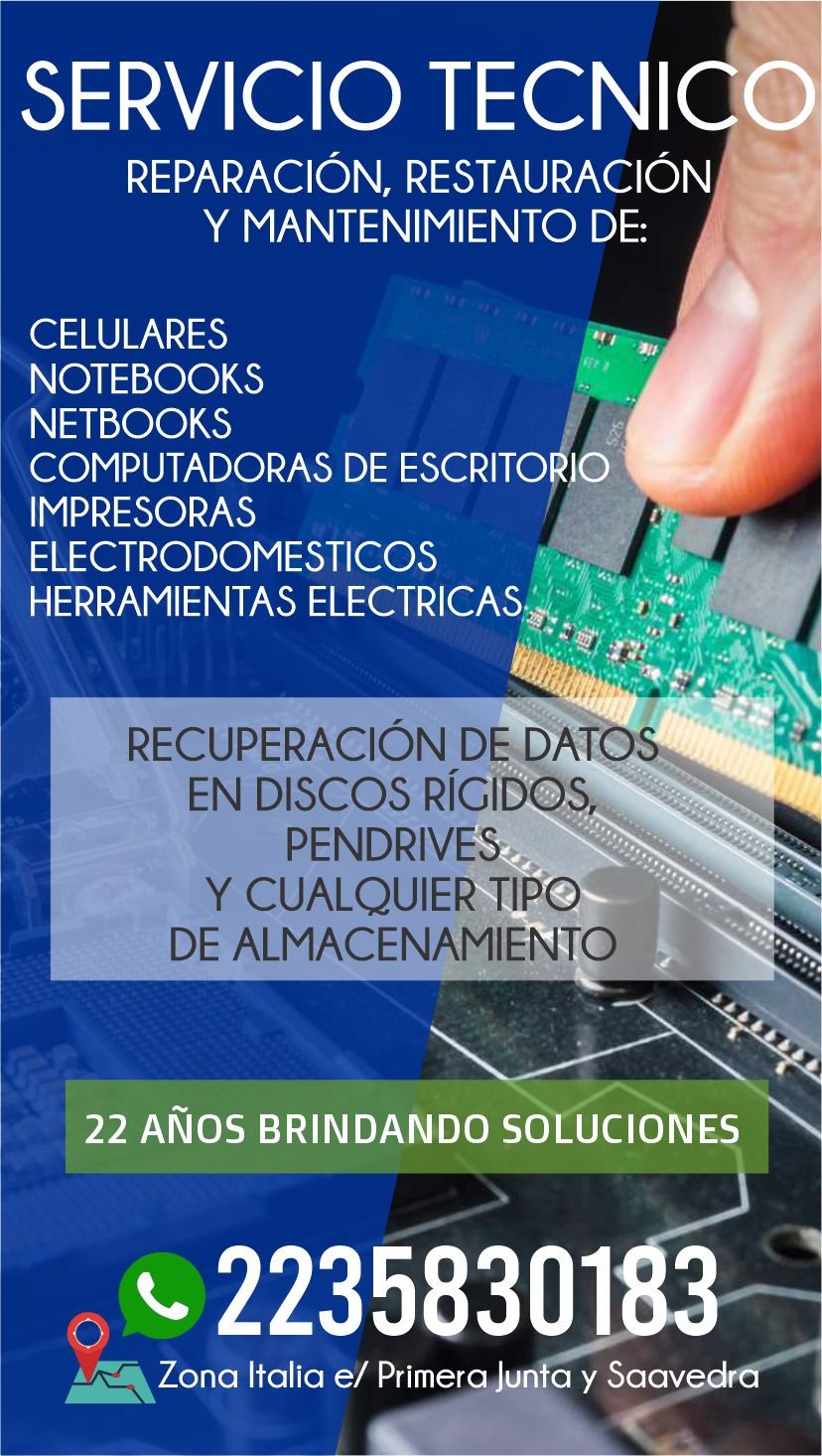 Servicio tecnico de Pcs, notebooks, impresoras, celulares, electrodomésticos etc.