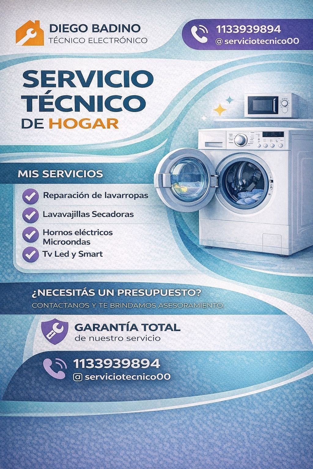 Servicio Técnico de Electrodomésticos, visita a domicilio, retiro, entrega y presupuesto sin cargo. Trabajos con garantía.