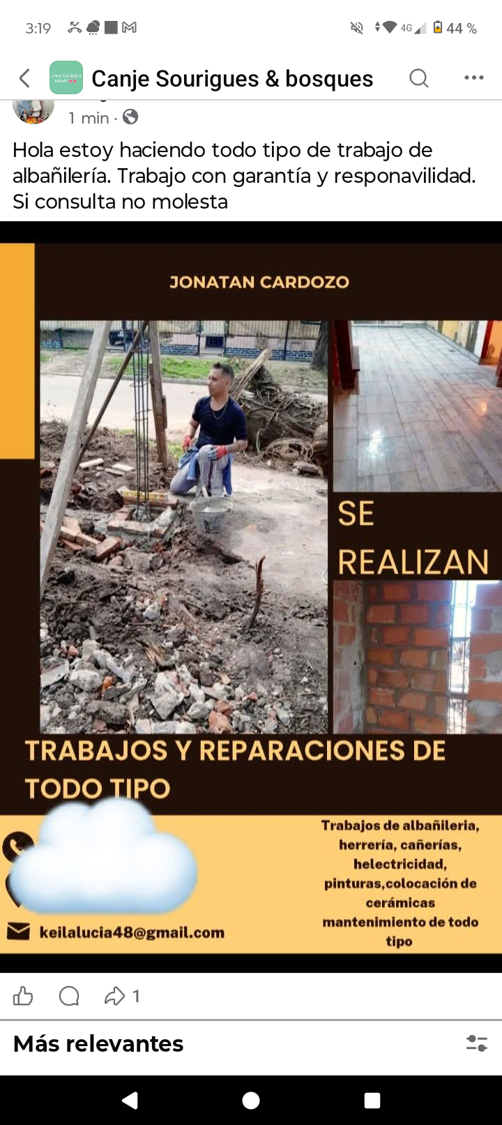 Realizó todo tipos de trabajos de albañilería mantenimiento plomería etc.